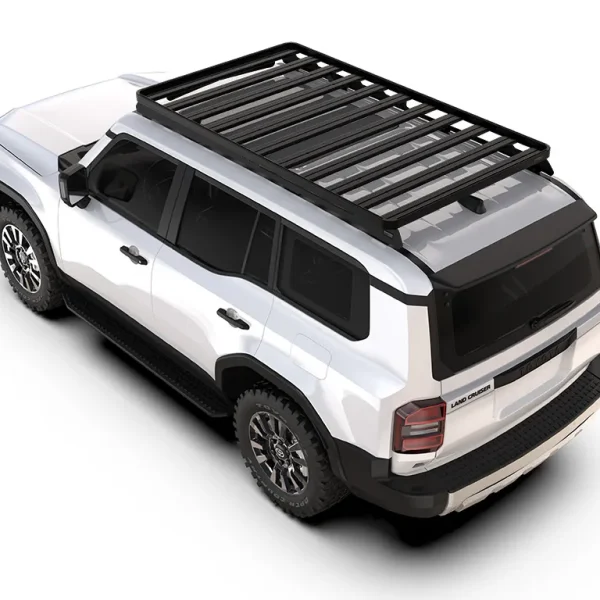 Ce kit de galerie de toit Slimline II pleine longueur de 2166 mm / 85,3″ comprend le plateau Slimline II, un déflecteur de vent ainsi que 4 rails de fixation permettant de monter le plateau Slimline II sur votre Toyota Land Cruiser Prado.