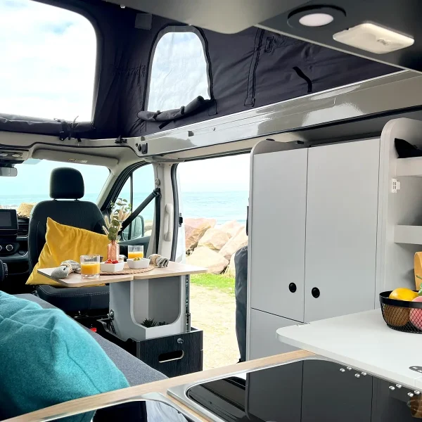Le Flex Confort PLUS d’Antilope VAN est un modèle parfaitement adapté à cette configuration, combinant modularité et confort. Son intérieur bien agencé permet d’avoir à la fois un coin repas, une cuisine fonctionnelle et un espace de couchage sans compromis sur la praticité, avec un passage facilité entre l’avant et l’arrière du véhicule. Ce type de van est idéal pour les escapades de courte durée comme pour des road trips prolongés, offrant une liberté totale tout en garantissant un niveau de confort élevé.