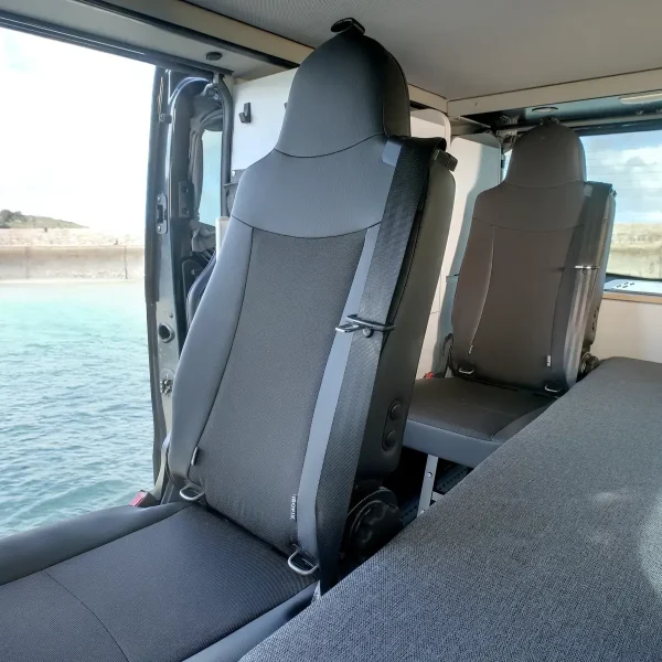 À l’inverse, si vous partez à plusieurs, ils s’installent en quelques secondes, offrant ainsi une configuration sécurisée et pratique pour transporter jusqu’à quatre personnes lors des déplacements de la semaine. Grâce à cette modularité, le Flex Confort PLUS peut être utilisé aussi bien comme véhicule quotidien que comme van de loisirs. Son intérieur s’adapte à toutes les situations, que ce soit pour un road trip à deux ou un voyage entre amis.