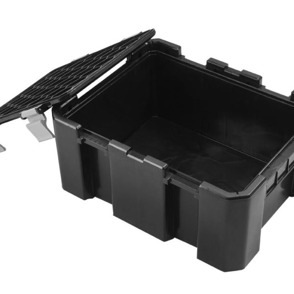 Ces boîtes de rangement en plastique, de taille pratique, sont faciles à ranger dans une benne et ont des côtés verticaux pour éviter toute perte d’espace. Elles s’empilent solidement pour un rangement pratique dans votre véhicule grâce à leurs couvercles qui s’insèrent parfaitement dans la base de la boîte située au-dessus.